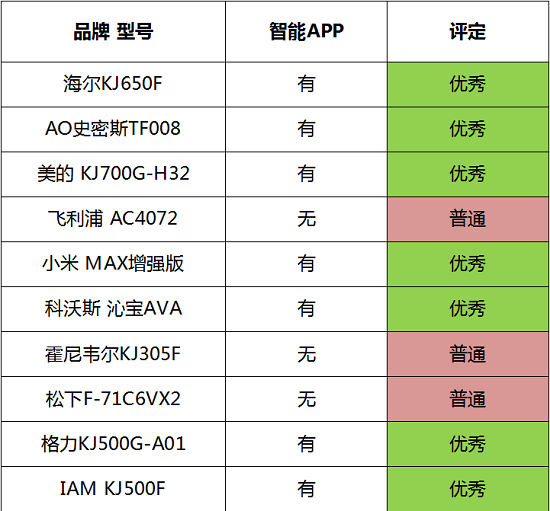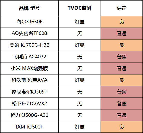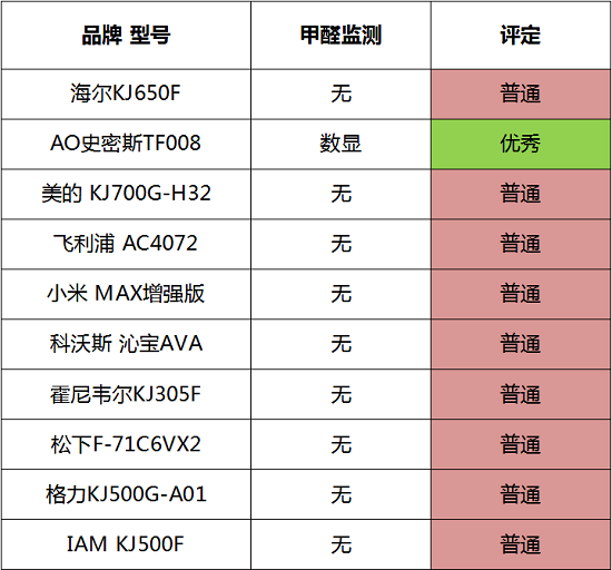 本次測試結果中,海爾KJ650F、科沃斯 沁寶AVA以及格力KJ500G-A01表現最為出色,都在0.5以下。