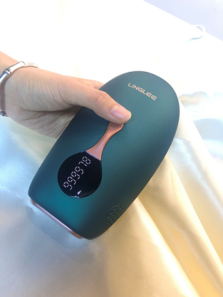 LINGLEE脫毛儀的整體外形類似一個比較圓潤的橢圓形,手掌大小,可以直立擺放,不占空間。