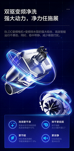 雙腔變頻凈洗,碗碟面面俱凈