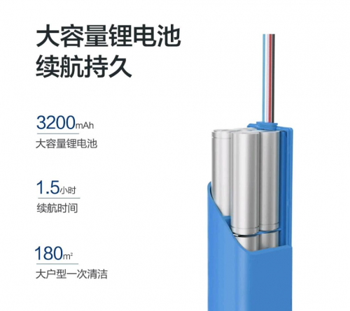 ▪內置3200毫安大容量鋰電池,續航時間長達1.5小時,180平方米大戶型也能一次性清潔。