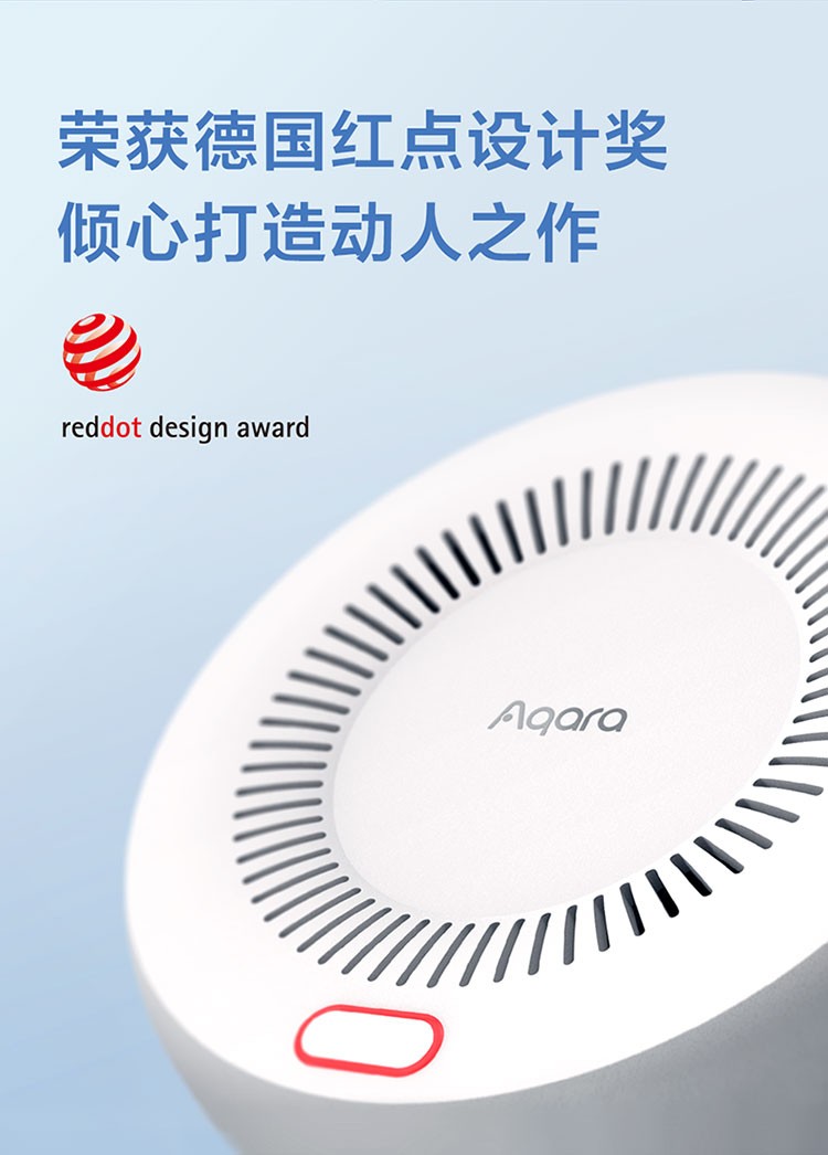 Aqara天然氣報警器還支持APP自動自檢,不僅如此,通過手機 App 還可以進行遠程消音、設備自檢、壽命到期提醒等功能,省去用戶每月手動檢查的麻煩,用戶可以在APP了解其可燃氣體傳感器的工作狀態, 一旦發現異常,及時提醒用戶更換天然氣報警器。同時,天然氣報警器還榮獲德國紅點設計獎,科技與美學的完美結合。