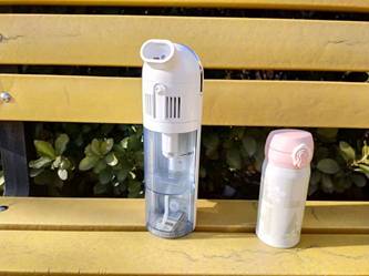灑哇地咔K611時尚小巧,和保溫杯大小相仿。