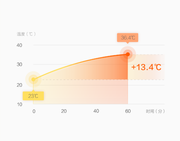相比較市面上很多取暖設備,智米電暖器1S的制熱速度首屈一指。據實驗結果表明,在初始溫度為23℃的實驗室內,智米電暖器1S在2200W功率下運行1小時,環境溫度可升高13.4℃。1小時內升溫十度多,這是很多普通電暖器所達不到的。租房家庭一般面積都不會太大,使用智米電暖器1S的升溫效果會更好。
