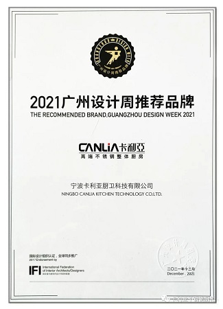 祝賀卡利亞櫥柜榮獲2021廣州設(shè)計周推薦品牌