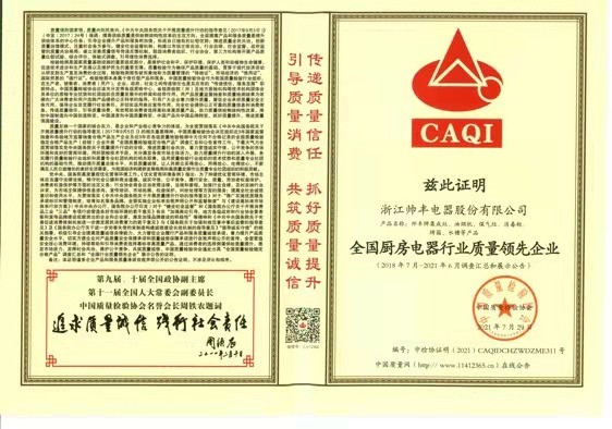 協(xié)會(huì)每年的評(píng)選活動(dòng)都備受關(guān)注,想要獲得它的認(rèn)證,企業(yè)不但需要在省級(jí)、國(guó)家級(jí)產(chǎn)品質(zhì)量監(jiān)督抽查過程中無(wú)不合格記錄,在近三年在相關(guān)質(zhì)量檢測(cè)中也必須無(wú)任何不合格記錄,非常考驗(yàn)企業(yè)在發(fā)展過程中對(duì)于品質(zhì)工作的堅(jiān)持。指的一提的是,2021年中國(guó)質(zhì)量檢驗(yàn)協(xié)會(huì)評(píng)選活動(dòng)共有幾千家企業(yè)參與,帥豐集成灶能夠通過權(quán)威專家層層篩選和審核脫穎而出,斬獲三大榮譽(yù)證書,代表著帥豐集成灶的品牌實(shí)力、企業(yè)實(shí)力、產(chǎn)品實(shí)力經(jīng)受得住國(guó)家權(quán)威機(jī)構(gòu)的考察及社會(huì)各界的考驗(yàn),無(wú)愧行業(yè)領(lǐng)軍地位,也是值得消費(fèi)者信賴的“新國(guó)貨”。