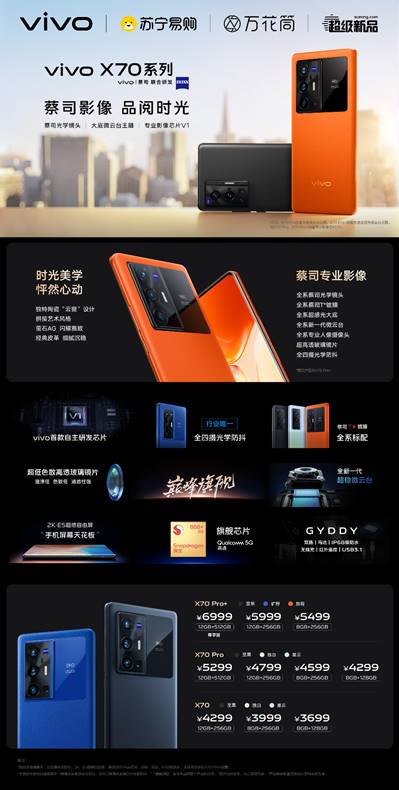 影像旗艦vivo X70系列登陸蘇寧易購 部分機型加贈50W無線快充