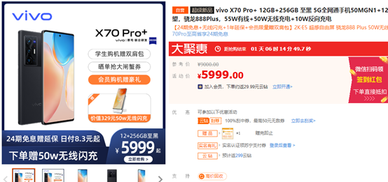 售價方面,vivo X70 Pro 8GB+128G版、12GB+256GB版和12GB+512GB版本價格分別為4299元、4799元、5299元;vivo X70 Pro+ 8GB+256GB版、12GB+256GB版和12GB+512GB版本售價分別為5499元、5999元以及6999元;vivo X70售價3699元起。vivo X70系列已在蘇寧易購線上及線下門店開啟預售,預定vivo X70 Pro+顧客享24期免息并贈50W立式無線充;預定vivo X70 Pro、X70系列顧客贈送TWS 2e耳機,門店購機以舊換新至高補貼1800元。