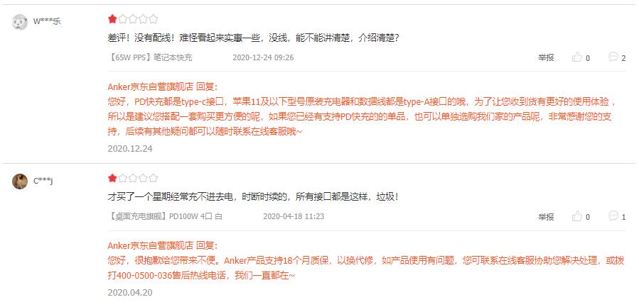 還有的消費者則認為安克Anker的做工粗糙,使用中溫度達到50度有安全隱患等。