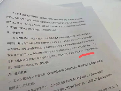 唐曉亮曬出了兩張合同內容截屏。說“我方如有必要,將選擇公布2019、2020兩份服務合同,以及四份由GFK出具的調研報告。”