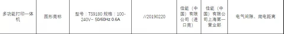 這款佳能打印機的不合格項目是電氣間隙、爬電距離。被抽樣生產者、銷售者為佳能(中國)有限公司上海第一營業部。