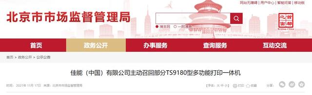佳能中國(guó):TS9180型打印一體機(jī)存短路隱患 缺陷產(chǎn)品被召回