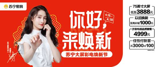 目前,蘇寧大屏彩電煥新節(jié)已全面啟動(dòng),期間蘇寧還將推出75吋大屏彩電低至3888元,以舊換新至高補(bǔ)貼1000元,沙發(fā)電視套購(gòu)4999元等超值福利。