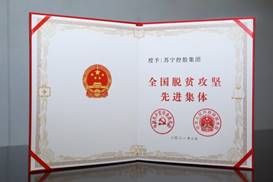 (圖:蘇寧控股集團(tuán)榮獲“全國(guó)脫貧攻堅(jiān)先進(jìn)集體”榮譽(yù)稱號(hào))