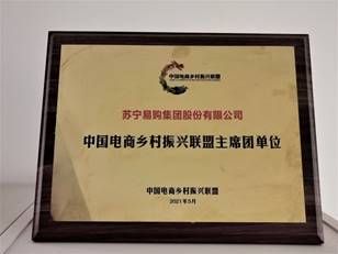 (圖:蘇寧易購(gòu)集團(tuán)為中國(guó)電商鄉(xiāng)村振興聯(lián)盟主席團(tuán)單位)