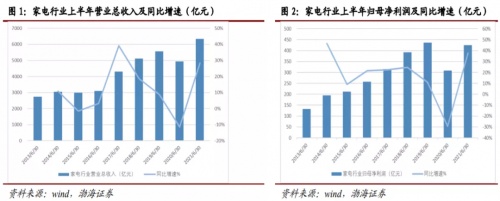 渤海證券研究顯示,2021年上半年,整個家電行業歸母凈利潤424.61億,同比增長37.8%;整體毛利率22.66%,同比下滑0.58%。
