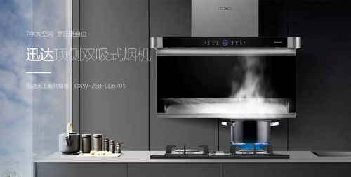 迅達“天工系列”頂側雙吸式煙機— 實現真正“油煙0逃逸”