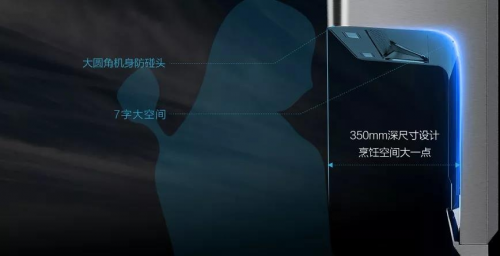此外,額頭采用350mm徑深+R80黃金大圓角設計,曲美圓潤,有效避免烹飪時碰頭的風險。