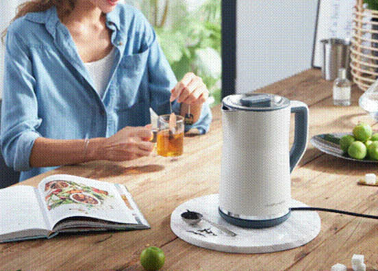 另外,在快節奏生活的壓力下,燒水也要講究高效率。一般燒水壺的功率都在1500w左右,而摩飛這款燒水壺可高達1800w,不僅比一般燒水壺燒水更快,而且保證每一滴水都能夠充分煮沸。0.5L水量燒至45°C僅需30s,燒至100℃僅需2分鐘;1.5L水量燒至45°C僅需60s,4分鐘即可沸騰,家用待客再也久等,燒開到指定溫度后還能自動進入30分鐘恒溫模式,隨飲隨取更方便。