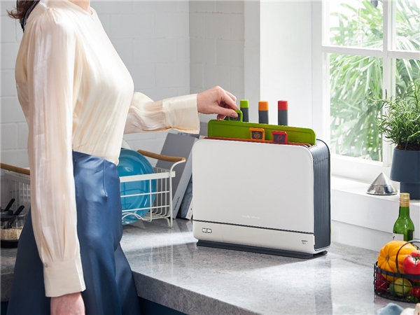 從此再也不用擔(dān)心刀板上有細(xì)菌了,也不用操心洗完的菜板和菜刀濕噠噠、要么用廚房用紙擦干、要么放在瀝水架上晾干。有了它,你可以把剛洗完還帶著水珠的菜刀菜板直接放進(jìn)去。