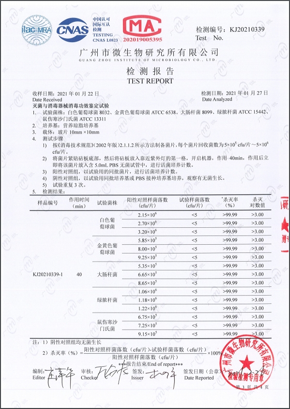 經(jīng)過(guò)權(quán)威機(jī)構(gòu)檢測(cè),它對(duì)刀板上常見(jiàn)的白色葡萄球菌、大腸桿菌等細(xì)菌的滅殺率高達(dá)99%!