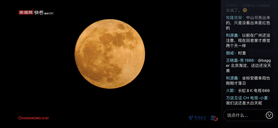 7月14日凌晨,年度“最大滿月”亮相夜空,央視網創新性的采用了5G+8K技術進行了直播,給廣大群眾和天文愛好者帶來了全新的觀賞體驗。不少細心的觀眾又在直播里發現了長虹8K電視的身影,作為本次央視網超級月亮直播專用電視,是繼迎接神舟十三返回地面活動后,長虹8K電視在超高清視頻直播的又一次挑戰和實踐。