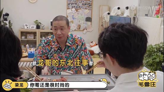 在節目一開始毛不易、李雪琴在等待好友的間隙,談論起長輩們的強迫癥,令年輕一輩萬分費解的“套娃行為”——給電器蓋簾,談論到即將到訪的好友梁龍,雪琴直言是自己的好大哥,毛不易表示自己大學期間還去過他的現場,是齊齊哈爾純老鄉。
