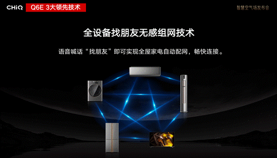 那么,這款空調是如何通過技術來實現三大場景的呢?是因為它同時具備了“全空間分布式語音交互技術、全屋協同跨品控制技術、全設備無感自組網技術”三大智能技術,只需聯網其中一個家電產品,不僅是空調產品,其他家電產品也能通過找朋友自動進行配網,簡單動口就可以輕松控制家中的所有家電產品,帶來互通、互聯、互控的非凡智能體驗。