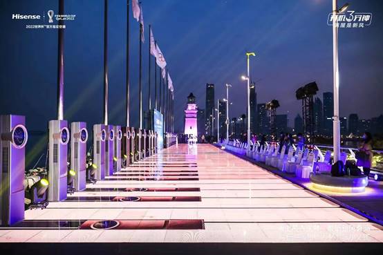 在青島的蜿蜒海岸線上,許多市民被燈光秀吸引,加入到激情歡暢的行列。青島市政府領導和各界嘉賓做客現場,與全網直播觀眾一起開啟足球激情。足壇名宿——金頂老茂宿茂臻與各位足球小將一起進行足球表演,宣告著世界杯激情即將到來,也為青島的濱海增添球場綠茵的色彩。在綠茵環繞中清新油然而生,海信新風空調正式開啟世界杯征程,也正式宣布城市更新計劃,為全球億萬家庭喚醒足球賽事激情與健康生命澎湃。