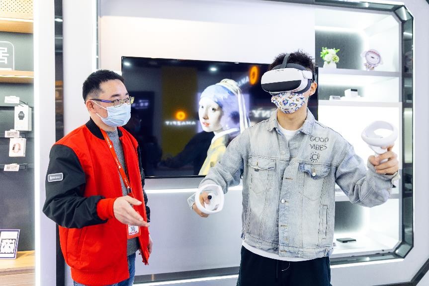 消費者在西安京東MALL體驗春晚同款好物及新潮電器產品