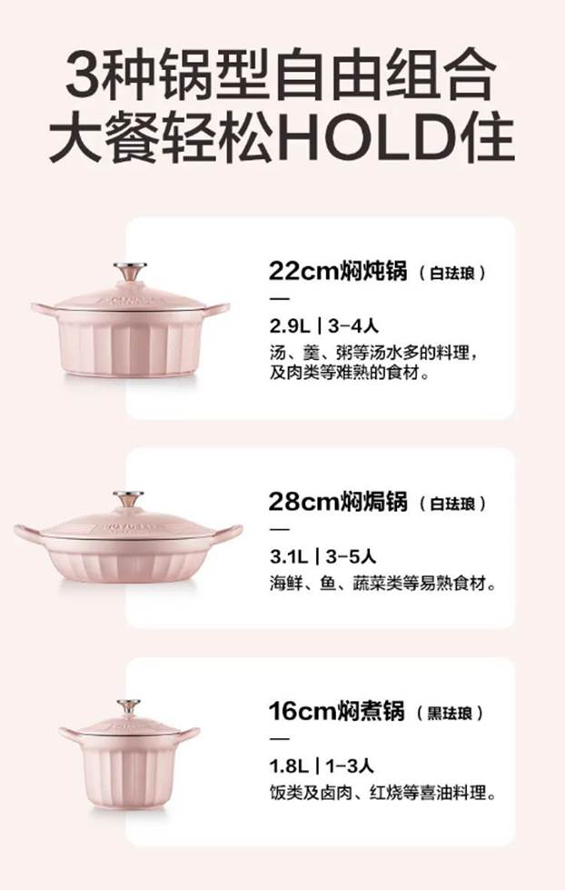 看過了這么多介紹就知道,其實它們各有所長!可以根據自己家里的飲食習慣,或者,三款鍋型自由組合,家里各種大餐都能輕松HOLD啦~