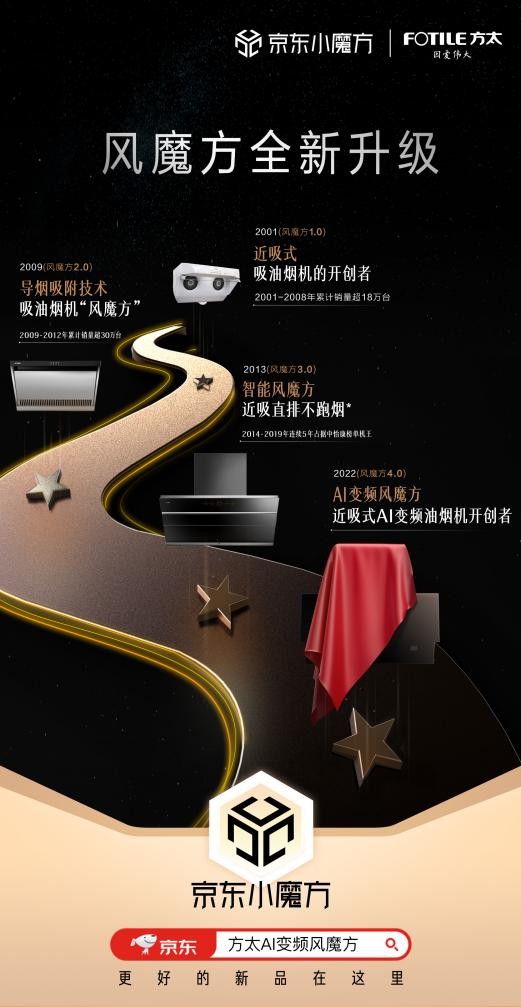 2022年5月8日,方太AI變頻風魔方云發布會如期而至,新一代的風魔方實現了自我的新飛躍,以深腔大寬屏的設計廣域攏吸,展現科技賦能生活之美。通過創新黑科技掀起油煙吸排新風潮,掌控吸攏進排四大環節,用性能成就生活的藝術表達。