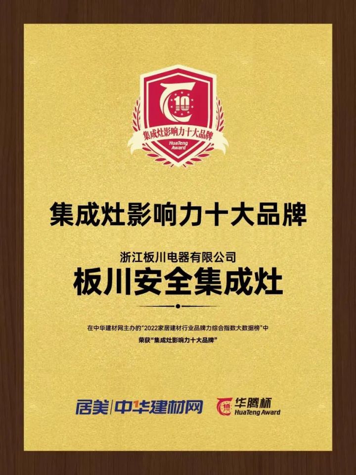 2022華騰杯集成灶影響力十大品牌——板川安全集成灶