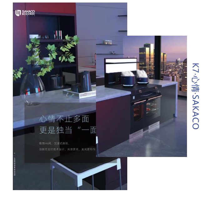 板川從音樂陶冶情操和顏色改變心情中受到啟發(fā),K7機(jī)頭有大面積可變光源,包容藍(lán)、浪漫紅、清新綠與純真白四色隨心切換,看得見的美好,AI數(shù)字智煙系統(tǒng)排煙過程中發(fā)出“演奏式的音樂”,聽得見的歡欣。炫美的“光”與優(yōu)美的“聲”結(jié)合,既保證了實(shí)際的烹飪效果,開心做出豐富的美食,也給人愉悅的心情,助力家的幸福,創(chuàng)意十足,不同凡響。