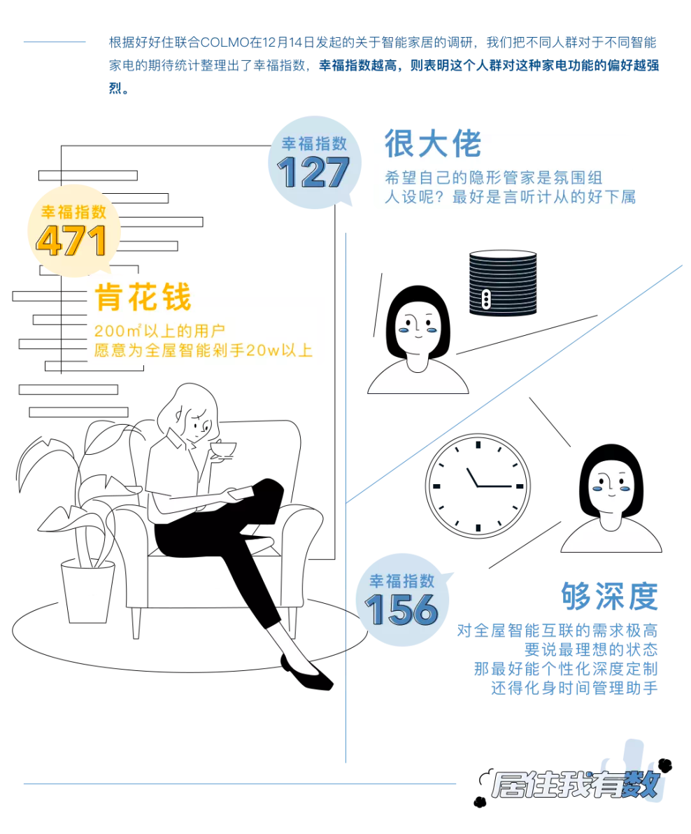 好好住新媒體團(tuán)隊(duì)通過(guò)在線上發(fā)起調(diào)研,了解更多中國(guó)家庭的智能化生活現(xiàn)狀,也與1698位朋友一起展開了一場(chǎng)針對(duì)未來(lái)智能家居的沉浸式幻想,總結(jié)發(fā)現(xiàn)了獨(dú)居青年、戀愛人群、寶媽、大宅屋主們對(duì)于全屋智能的不同期待,這些期待并非是不著邊際的幻想,更多是對(duì)如今智能產(chǎn)品問(wèn)題的思考。