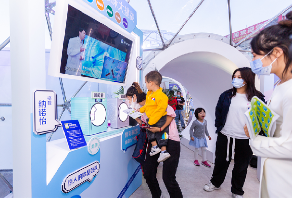 納諾怡體驗館非常顯眼,遠遠望去兩個透明球科技感十足。走近體驗館,領(lǐng)取集章卡后就可以開啟凈美生活體驗之旅!