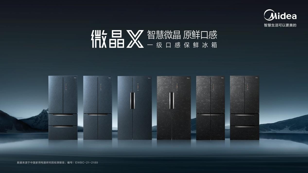 創新挖掘“口感保鮮”,引領行業保鮮技術破局正如周一帝先生所闡述的那樣,美的冰箱一直在打造“超越用戶期待”的產品。5月5日,重磅推出“美的冰箱微晶X”系列,作為美的冰箱發力高端市場,探索保鮮科技的標桿產品,“微晶X”從口感保鮮技術升級、外觀涉及升級、場景體驗升級等維度出發,為消費者帶來X-FlAVOR、X-DESIGN、X-LIFE 三大核心升級點,凸顯“微晶X”一級口感保鮮冰箱的產品定位。為滿足消費者對食材保鮮的升級需求,美的冰箱微晶X技術上不斷創新突破。全新的微晶一周鮮,對溫度監測系統、數據云計算系統、送風控冷系統進行了全方位升級,通過毫秒級雷達感溫、V-TECH智能云保鮮和柔和環抱送風,微晶X得以擁有更多更全的數據算法,可直接感知食材溫度,精控原鮮口感每一“度”,肉類水產等食材保證達到7天新鮮的同時,還進一步提升了鮮、嫩、潤、滑、彈的口感體驗。