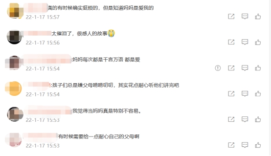 父母對子女的愛從來都是深沉的,是含蓄的,短片中媽媽的微信長語音讓很多網(wǎng)友破防!京東電器《60秒》情感短片通過溫情質(zhì)樸的敘事方式,喚醒觀眾對于父母與子女之間親情的重新審視,引發(fā)了一場關(guān)于親情、關(guān)于陪伴話題的探討,一時之間,“你有多久沒有聽媽媽的話了”,“當(dāng)收到父母60秒連環(huán)Call,你有耐心聽完不”以及“年底果然是爸媽催婚對的好時機(jī)”等話題持續(xù)發(fā)酵,引起了廣大網(wǎng)友的共鳴與探討,形成與用戶的情感共振。