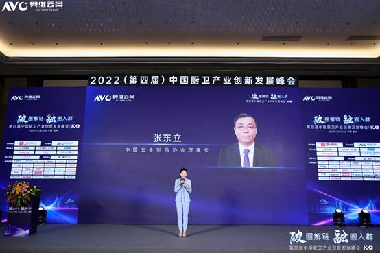 首先,中國五金制品協會理事長張東立通過現場主持人在致辭中表示,2022年,中國廚衛產業面臨諸多的不確定因素,但大家直面“寒冬”,堅韌向前,各企業都在努力奮戰,在挑戰中主動尋找著屬于自己的機會。對于2023年,中國廚衛產業有望逐步走向相對穩定的市場狀態,但在產業新周期下企業何以高效經營,要從消費端把握用戶需求,從產品端技術創新升級,從資源端整合提效破圈等方面來融合發展,重構中國廚衛產業新生態。