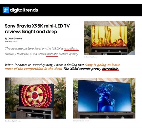 Techweek 評測文章《Sony X95K Review: 4K Mini-LED TV that deserves your attention》
