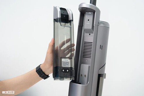 機身前方是清水箱,后方的為污水箱,兩個都是摳一下鎖扣就能拆卸清洗。