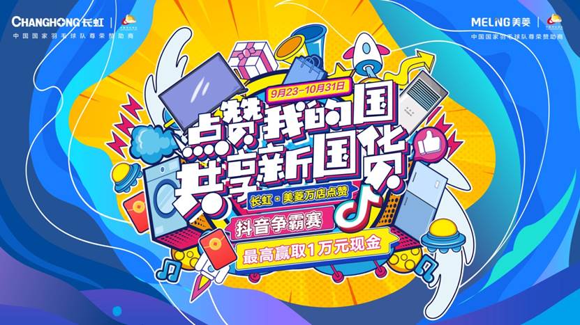 長虹·美菱“禮贊盛世”三重福利更是別具色彩,包括“品質有禮、點贊有禮、成套有禮”三大福利組合。首先,只要選擇活動中的明星產品,就能獲得價值不等的禮品,智能方煲、美妝冰箱、智能手表,體貼到生活的更多細節。其次,長虹·美菱將家電購買變得超時尚,開展的“點贊我的國 共享新國貨”——長虹·美菱國慶萬店點贊抖音爭霸賽,抖音傳播產品點贊視頻,內容圍繞各品類產品核心功能進行推廣、打Call,均有機會參與“長虹·美菱萬店點贊贏萬元現金”大獎活動,有機會獲得最高1萬元現金獎勵。