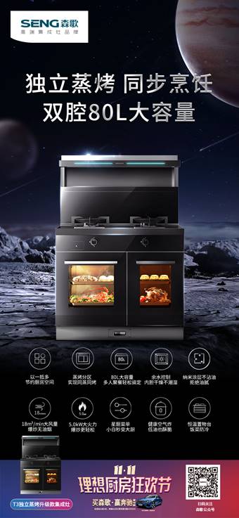 雙十一活動期間,在森歌天貓、京東及全國門店下單并交付全款即可參與免單抽獎活動。各類爆款產品如森歌i3蒸烤一體升級款集成灶、森歌t3獨立蒸烤升級款集成灶和森歌i5ZKZ-G左蒸右烤集成灶和U3S除菌集成洗碗機等產品均參與活動,全國線上線下同價。