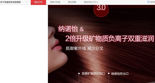 家電消費網(wǎng)1月5日訊 “松下XD20吹風(fēng)機號稱抵御紫外的效果約為1.7倍,頭發(fā)分叉發(fā)生率降低20%,這些虛假宣傳不是已經(jīng)被工商局罰款20萬了嗎,怎么還在虛假宣傳進行售賣?”昨天,北京一消費者向家電消費網(wǎng)爆料稱,在京東等電商平臺,如今依然可以看到松下吹風(fēng)機XD20的宣傳頁上寫有“礦物質(zhì)負離子產(chǎn)生量增至2倍,深層滋潤秀發(fā),改善發(fā)質(zhì)”、“2倍礦物質(zhì)負離子的雙重滋潤,抵御紫外線減少分叉”等內(nèi)容,靠這些虛假宣傳誤導(dǎo)消費者購買。