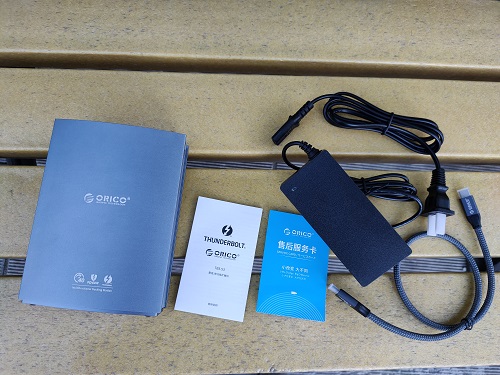 打開包裝,里面有拓展塢,以及電源線、100W雙頭Type-c數(shù)據(jù)線,說明書和保修卡。