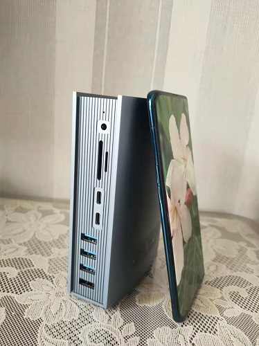 該擴展塢有3口充電設計。其中,用PD60W接口可以直接給電腦供電,使用DC60W則可以帶動更大功率設備,PD15W可以是手機、平板的接口,充電速度很快。