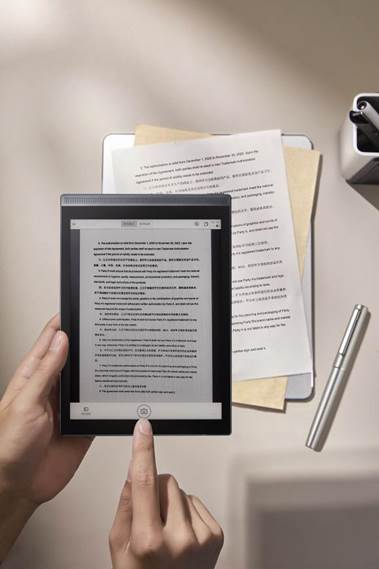 憑借訊飛專業的OCR識別技術,Air上的手寫筆跡也可以快速準確地轉換為可編輯文本。不僅如此,Air此次在OCR的實力上更是得到了硬件加持,墨水屏設備首次搭載掃描攝像頭,紙質文檔或手寫筆記,咔嚓一拍,立刻就能轉錄成電子檔,抬筆就能圈畫、批注,輕松分享給他人。