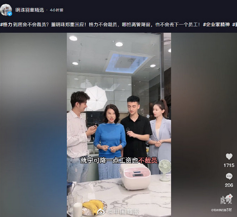家電消費網(wǎng)5月26日訊 今天,格力電器董事長兼總裁董明珠在格力官方認證的抖音帳號上表示,近期很多企業(yè)壓力較大,裁員現(xiàn)象頻頻發(fā)生。格力向員工承諾,在任何困難的情況下絕不裁員。如果一定到了非常困難的地步,寧可降一點工資也不裁員。