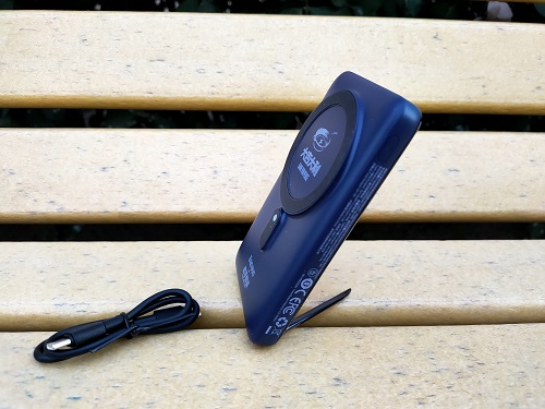 倍思1萬毫安磁吸充電寶和平精英聯名款有兩個顏色,煙霧紫和雨林綠的潮流配色。正面有一個3D立體浮雕工藝的和平精英元素,看起來更炫酷、有格調。還有個與眾不同的地方是這款充電寶多了一個可折疊的金屬支架。