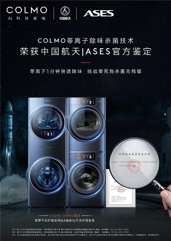 除了設計,COLMO星際站還內置了諸多高科技亮點。首先在洗衣環節,COLMO星際站采用了“AI等離子輕干洗”功能。可以通過AI技術讓內置的智能變頻壓縮機+BLDC智能變頻電機組合針對真絲、羊絨、皮革和奢品等不同材質的衣物釋放不同量級的高能軟蒸汽,輕松實現在家輕干洗的效果。借助于AI和等離子技術,COLMO星際站實現了對99種面料的精準祛味以及無水除塵,甚至還有100%的除螨效果。另外在當前后疫情時代的大背景下,消毒殺菌也是衣物洗護過程中的重要環節。COLMO星際站搭載的等離子技術可以實現零死角殺菌效果,殺菌率高達99.9%。