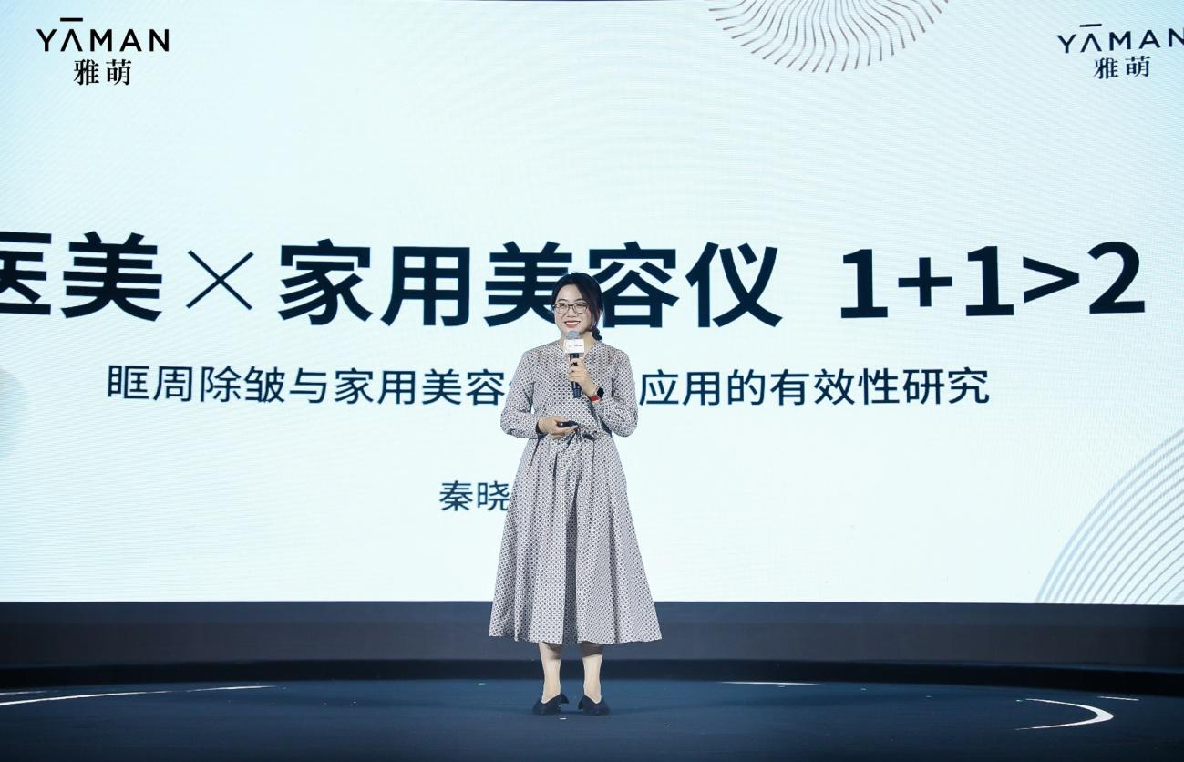 對于醫(yī)美項目聯(lián)合家用美容儀使用的可能性、方法和效果,雅萌聯(lián)合德醫(yī)皮膚,在全國3家機構(gòu)陸續(xù)開展關(guān)于「醫(yī)美×家用美容儀]的聯(lián)合應(yīng)用探索。德醫(yī)皮膚聯(lián)合創(chuàng)始人、北京大學(xué)皮膚學(xué)博士秦曉蕾在此次峰會現(xiàn)場分享了《眶周除皺項目與家用美容儀聯(lián)合應(yīng)用的有效性研究》階段性成果——受試者在進行A型肉毒毒素項目后使用雅萌ACE五代射頻儀后,能夠起到部位互補、技術(shù)互補、功效互補的作用,整體對減少眼周細紋、眉間紋、眼周動態(tài)紋,以及提亮眼周膚色等均具有改善效果,并且受試者對使用感受的滿意度高,均未出現(xiàn)任何不良反應(yīng)。